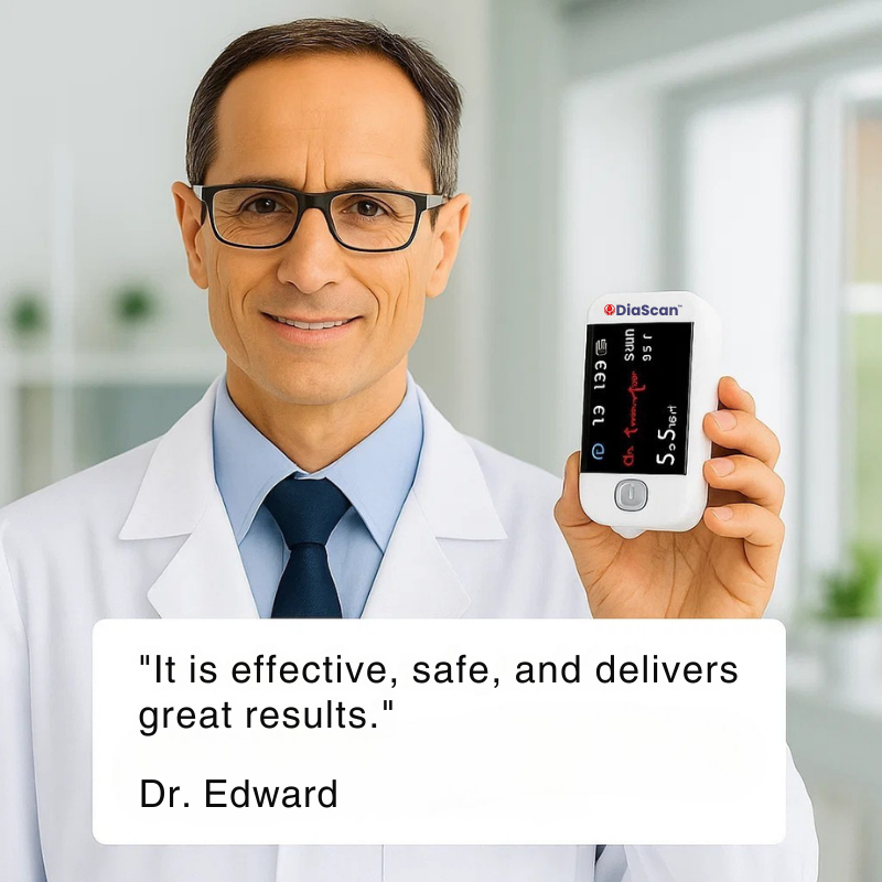 Leading endocrinologists and diabetes specialists recommend DiaScan™. Clinically tested technology ensures safe, needle-free monitoring with consistently accurate results.